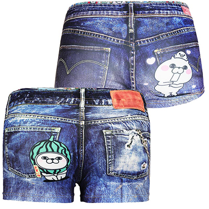 大人気のDARK SHINY×YOSISTAMP「DENIM」の第二弾が登場! ヒップに夏限定スタンプをワンポイントつけたデザイン。 メンズはスイカを被った「うさぎ100%」レディースはアイスを食べる「ぬこ100%」と、絵柄も男女で異なるデザインに進化しています! DARK SHINY、YOSISTAMPファンはもちろん、ファンでなくても楽しんで履けるオススメの一枚です。